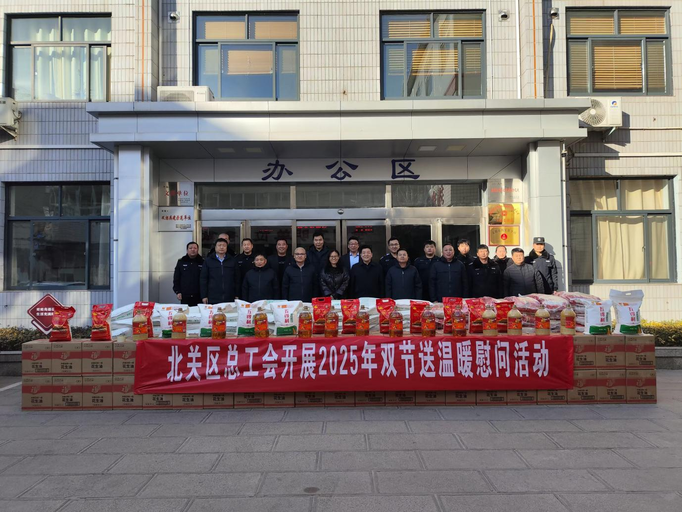 活動(dòng)中,公司大院里熱鬧非凡,一箱箱大米、一袋袋面粉、一桶桶食用油整齊排列,區(qū)工會(huì)領(lǐng)導(dǎo)親自帶隊(duì),將慰問(wèn)物資一一送到職工代表手中。